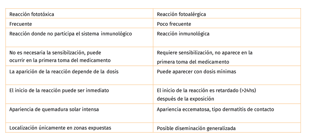 Existen algunos medicamentos, denominados fotosensibilzantes que pueden producir reacciones de fototoxicidad o fotoalergia frente a la exposición a la radiación ultravioleta, o exposición solar.