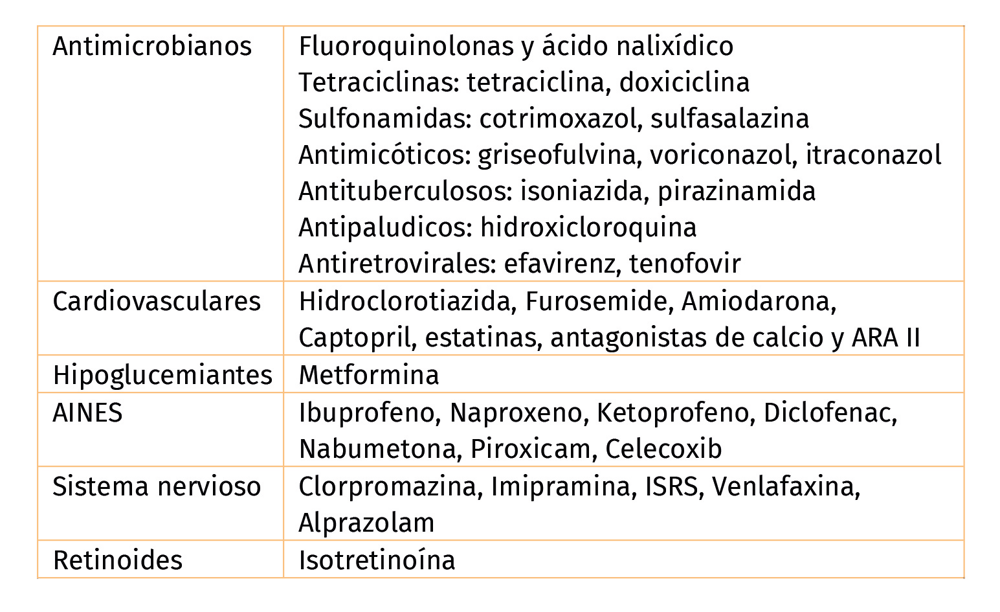 No todos los medicamentos son fotosensibilzantes. A continuación, se listan los principales causantes de estas reacciones: